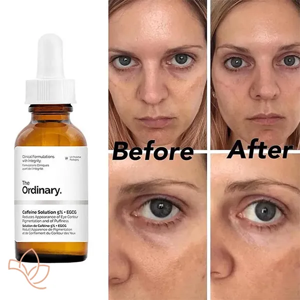 • این سرم حاوی 5% کافئین خالص است که به بهبود گردش خون در ناحیه زیر چشم کمک می‌کند. کافئین یک ماده طبیعی است که به کاهش تیرگی و پف زیر چشم‌ها معروف است و به بازسازی ظاهر خسته پوست کمک می‌کند.