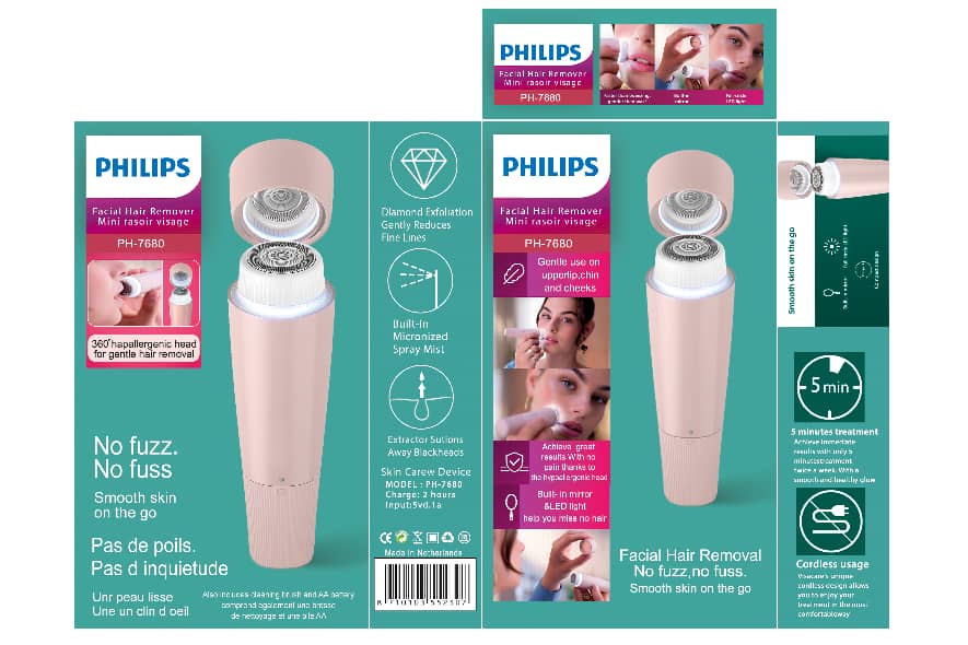 این ماشین اصلاح فیلیپسمدل 7680 به خصوص برای اصلاح موهای صورت بانوان طراحی شده است، از جمله موهای نازک بالای لب، چانه، گونه و خط فک. این ابزار همچنین ادعا میکند که بدون هیچ گونه دردی کار میکند زیرا به گفته شرکت فیلیپس، ۸۶ درصد افرادی که از این دستگاه استفاده کردهاند، اعلام کردهاند که هنگام اصلاح صورت با آن هیچ دردی حس نکردهاند.